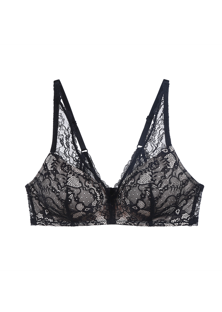 Special Deals LISA Plus Sexy Recycled Lace Wireless Black Bra