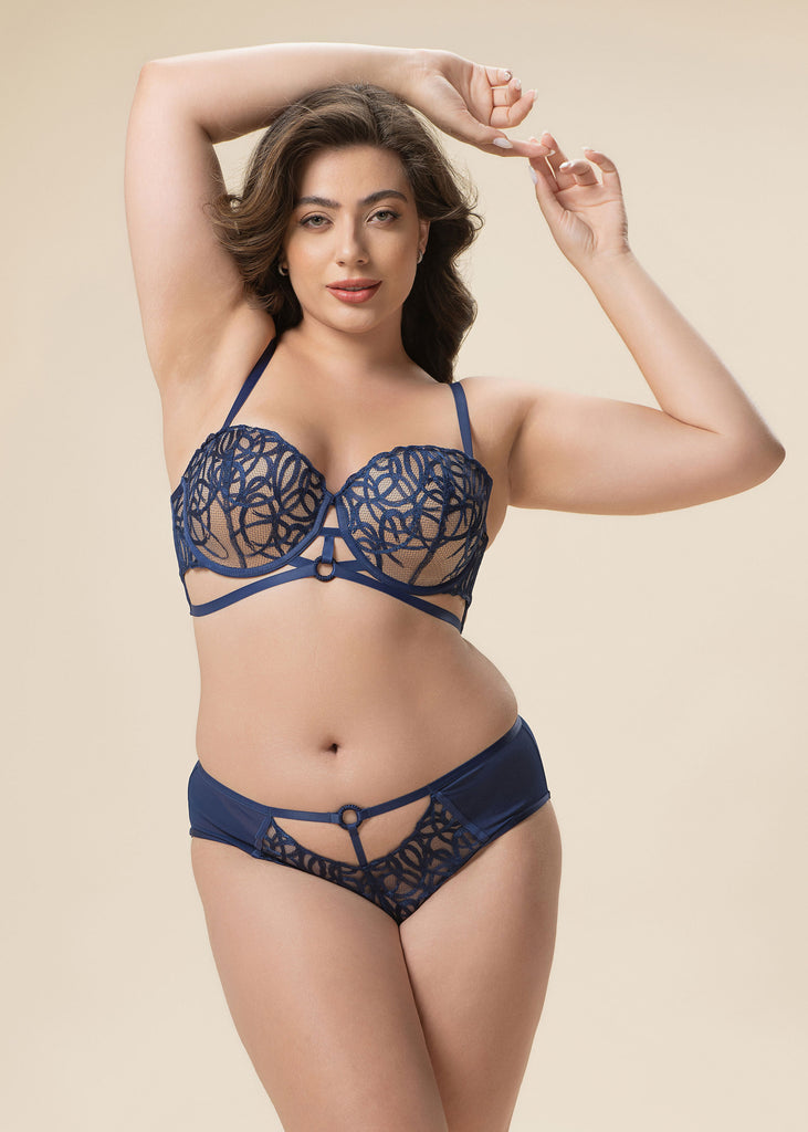 CLAIR Plus Navy Blue Lace Lingerie Set