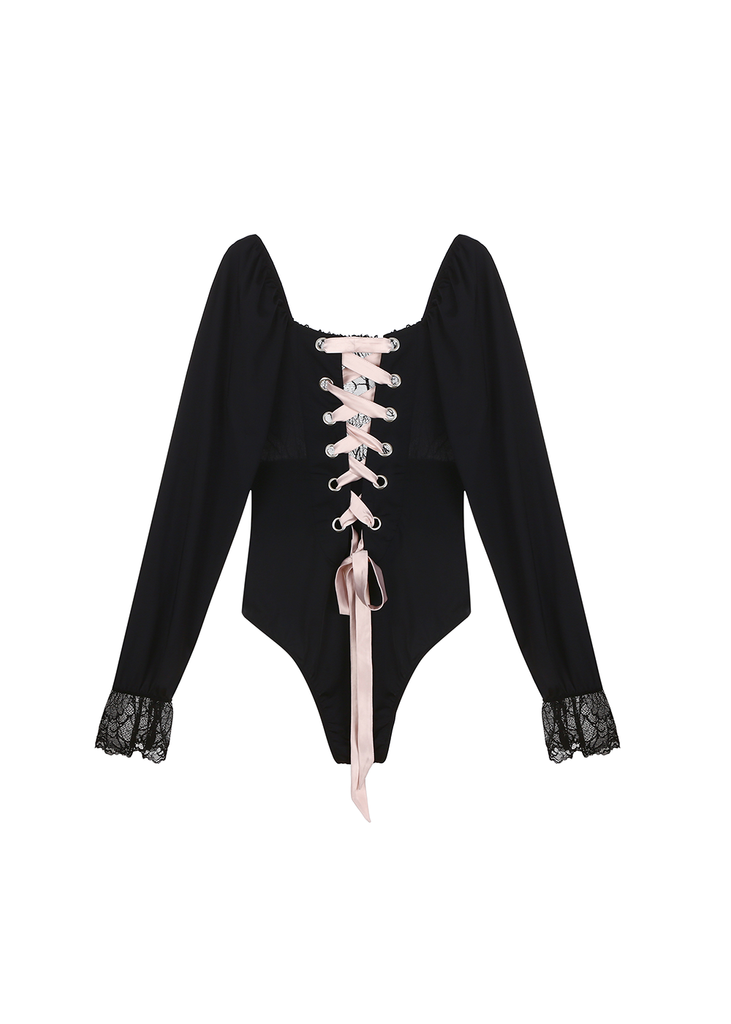 ROSA Sexy Black Pink Eyelash Lace Unlined Bodysuit