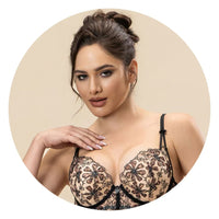 Crafted in a soft deep nude tone that blends seamlessly with the skin, this push-up demi bra balances gentle shaping with refined lace detailing, creating a quietly feminine silhouette that feels polished and elegant from every angle.