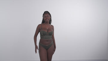 • Flaunt your curves with the revealing triangle cut of our fatigue green brief-style panties.
